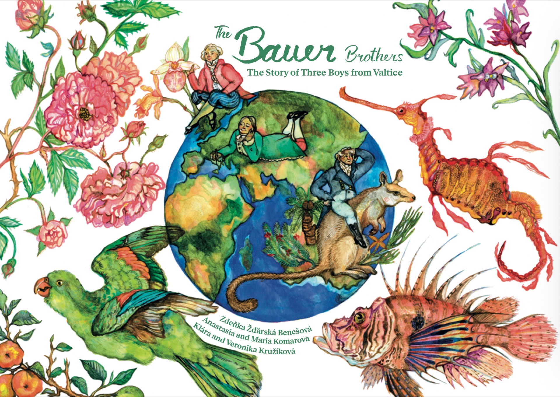 Comics-style illustrations capture the team's travels while researching the book, adding a playful, contemporary touch. QR codes connect readers to digitized originals of Bauer illustrations stored in foreign archives. The endpapers feature charming flowerpot drawings by local schoolchildren, inspired by those the Bauer brothers, as kids, created for the herbarium of their benefactor and Prior of the Hospitaller Order in Valtice, Norbert Boccius.***
